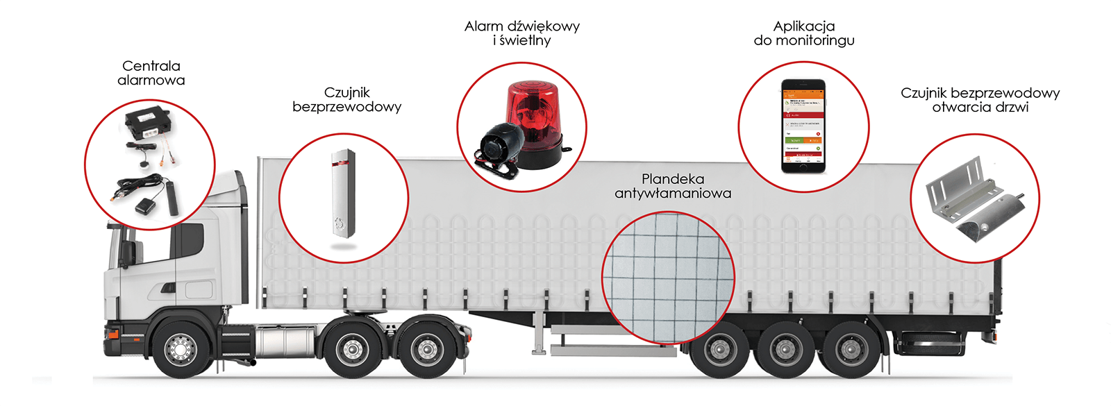 D: Samo podłączenie alarmu jest proste i nie zajmuje dużo czasu. Przeprowadziliśmy kilka szkoleń dla kierowców, jak obsługiwać dodatkowe zabezpieczenia. Czujnik wmontowany w plandekę na bieżąco wysyła informacje o swoim stanie do centralki sterującej. Każda próba przecięcia plandeki powoduje wysłanie sygnału do centrali, która rozsyła satelitarną informację alarmową do wybranych miejsc docelowych i uruchamia sygnał świetlno-dźwiękowy.